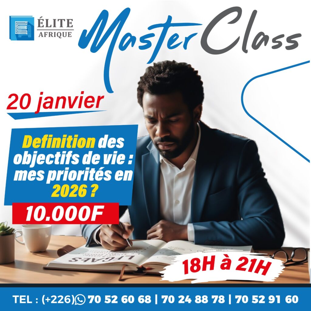 Date : 20 janvier 2026 Heure : 18h – 21h 📍 Lieu : Ouagadougou (Siège de Élite Afrique, Dassasgho) Possibilité de suivre en ligne pour les autres localités Coût : 10 000 FCFA